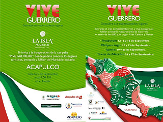 La Isla Acapulco ofrecerá a sus visitantes durante todo el mes de septiembre y parte de octubre la muestra cultural Vive Guerrero, que tendrá lo más representativo del estado con muestras artesanales, pictóricas, fotográficas y un sinfín de actividades folklóricas características de las diferentes regiones del Estado.